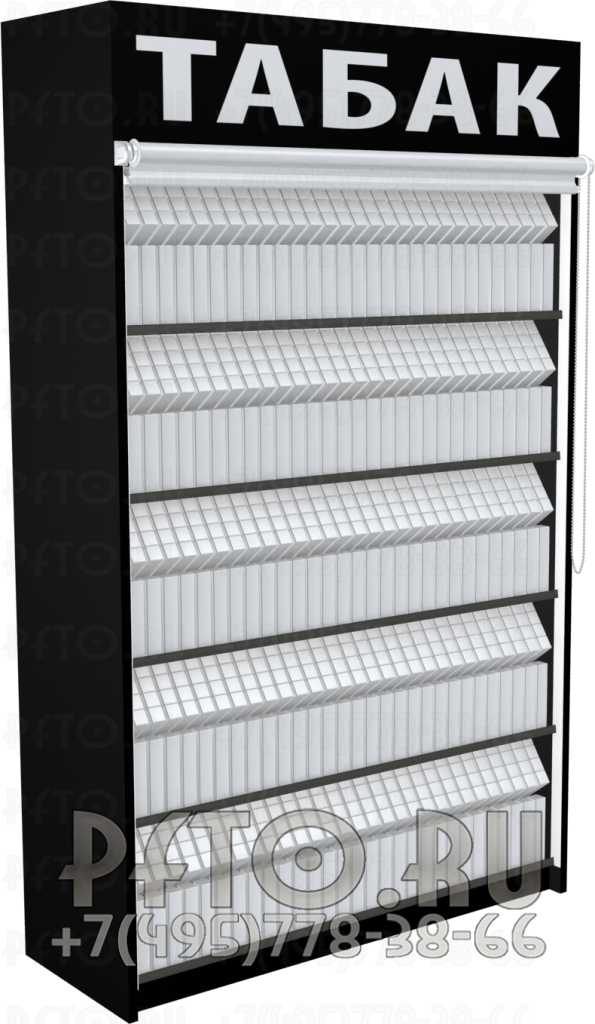 Шкаф с пятью уровнями гравитационных полок для электронных сигарет возможность настраивания по ширине - шаг 15 мм. Установка упаковок высотой до 200 мм. Корпус производится из плиты ЛДСП, кромка пвх в цвет корпуса. Полки изготавливаются из метала с сочетанием ЛДСП. Шкаф закрывается/блокируется рулонной роллетой с ручным управлением. Данную модель шкафа можно дополнить светодиодной подсветкой