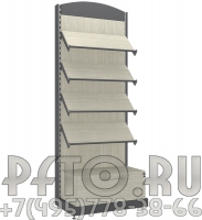 Торговый стеллаж с полками под наклоном с ограничителями и тумбой под товар