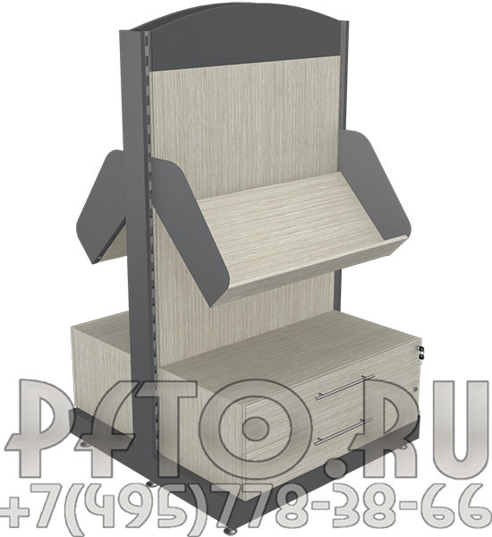 от 32 300 - Стеллаж островной с наклонными полками для торговли с тумбой под товар