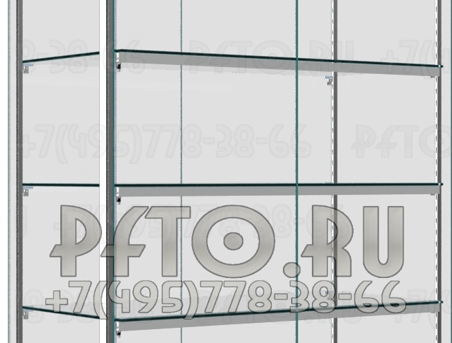Подсветка для витрин LED линейками для четырёх уровней полок.